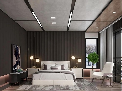 天然居全鋁大板吊頂為空間創(chuàng)造出的層次感,讓小小的次臥變得溫暖有趣。墻面盡量以淺色為主,如淺灰色、象牙白色都是不錯的選擇。